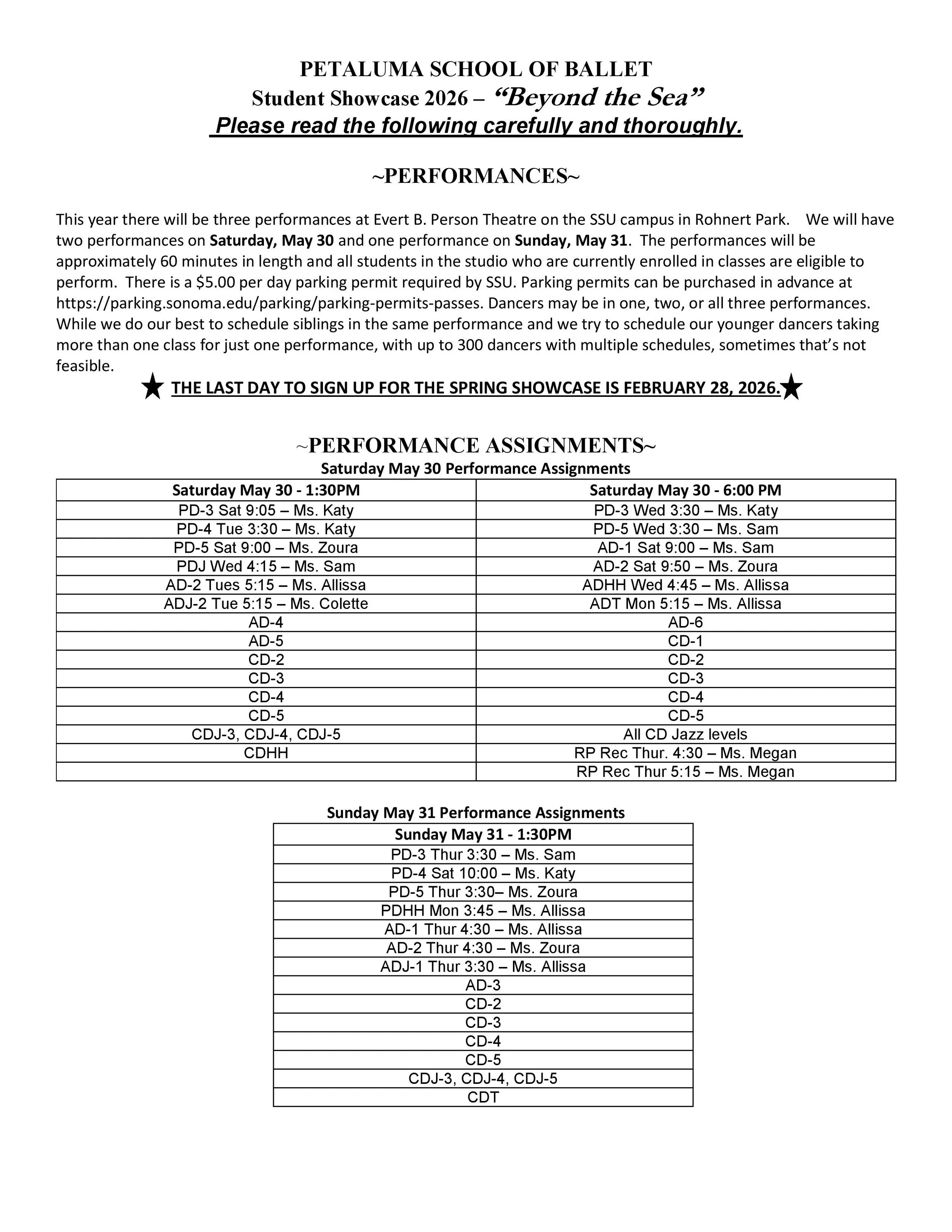 Spring Showcase Information