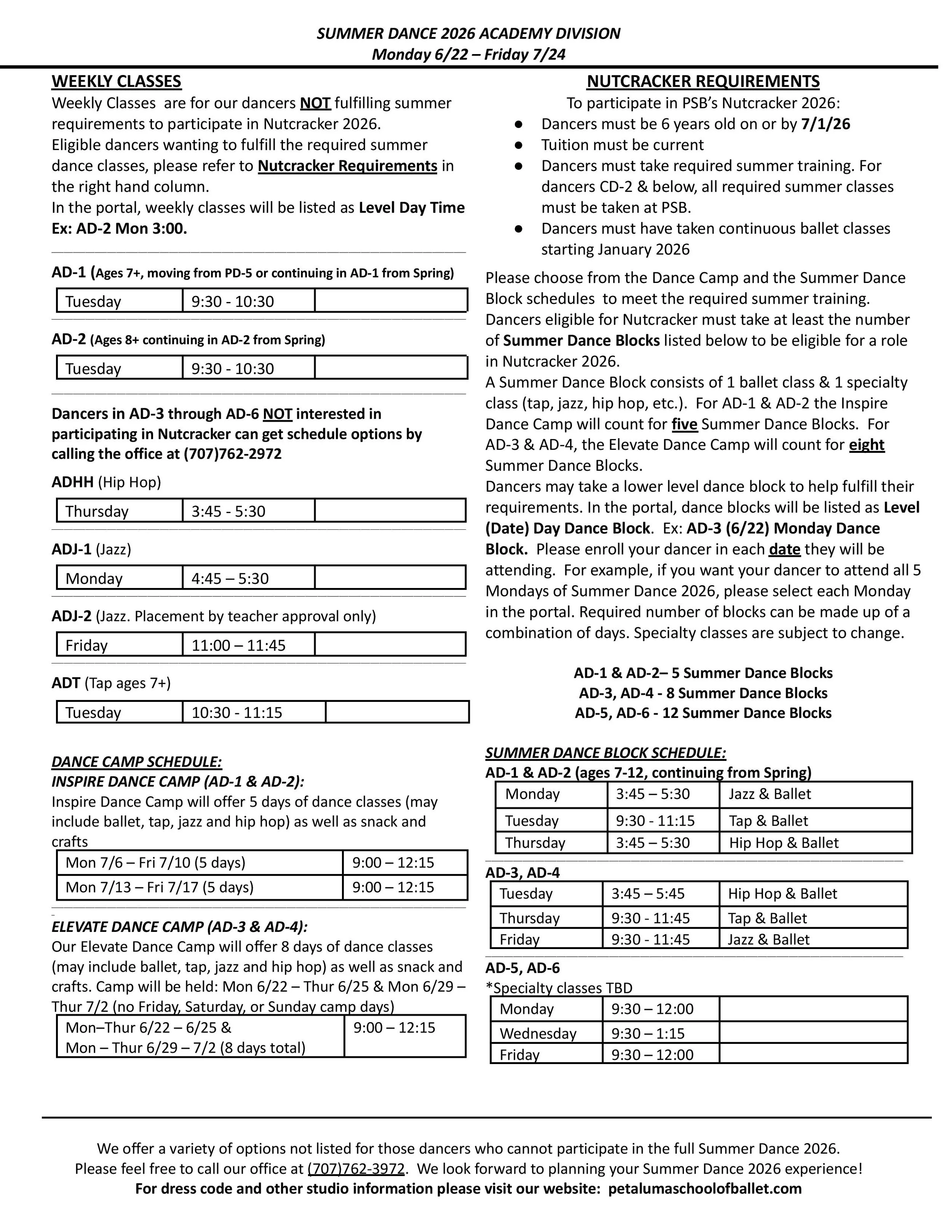 New Students: to register for Summer Dance 2026 please click the registration tab above.